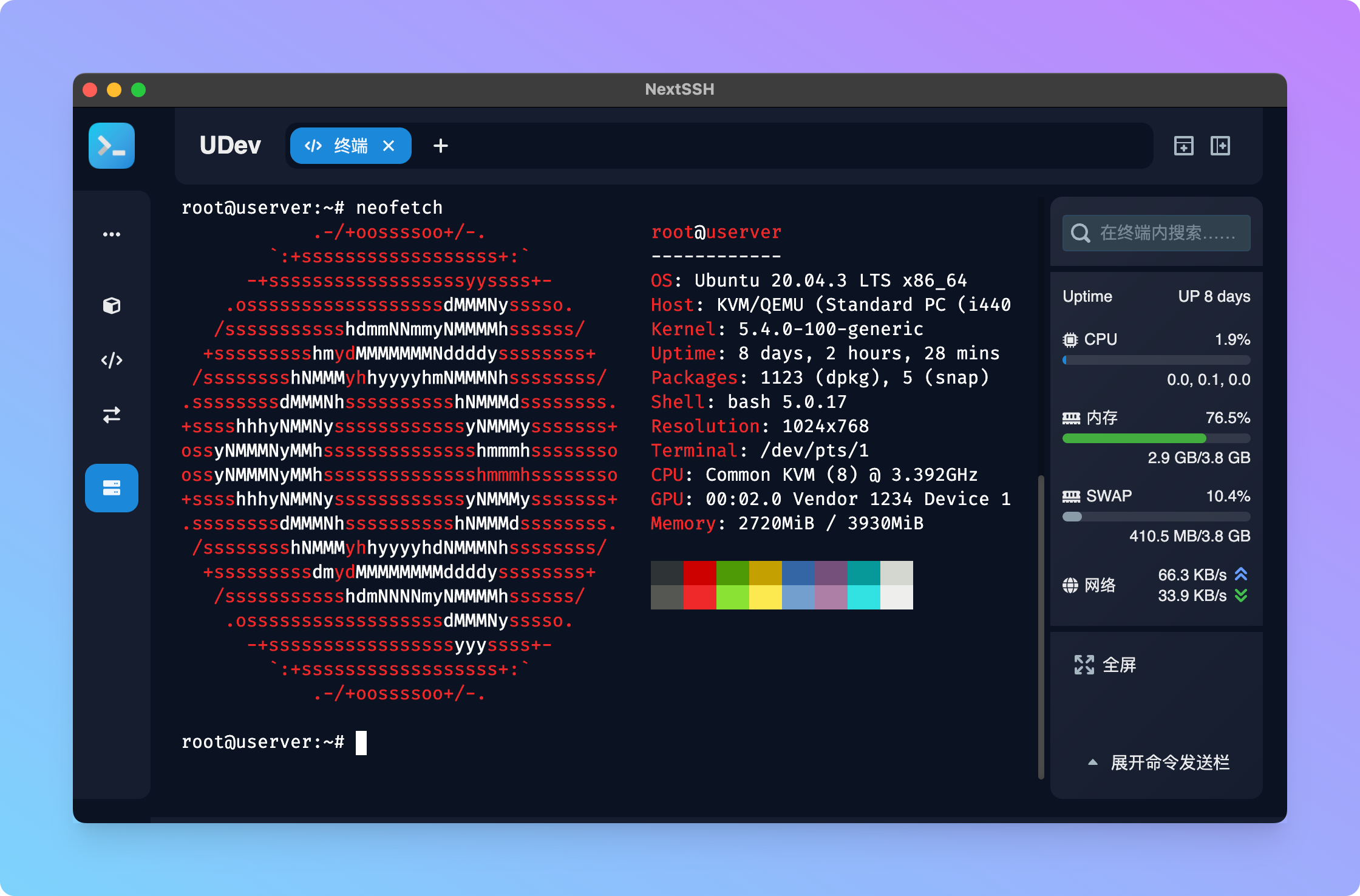 NextSSH 是一个简洁直观的 SSH 客户端,提供用户友好的界面和便捷的功能,适合开发者和管理员使用。
