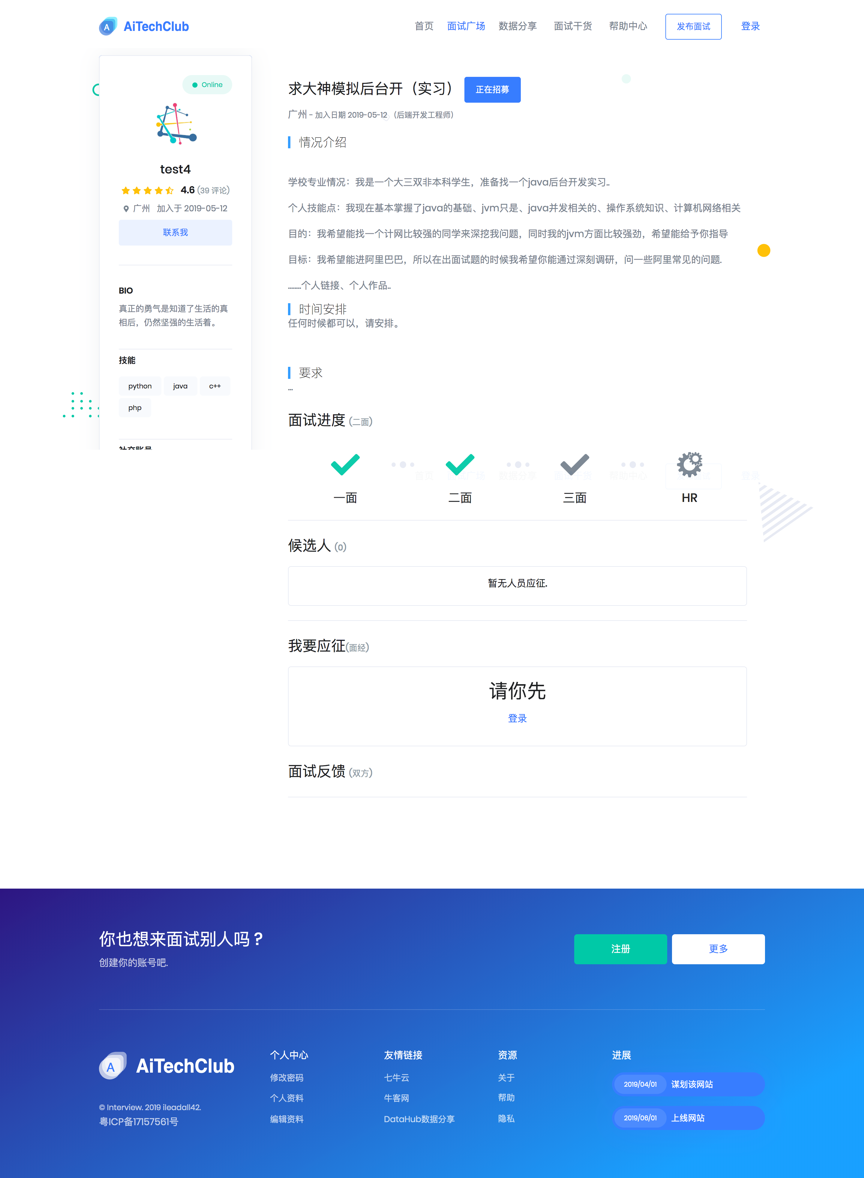 一个帮助用户找到队友进行模拟面试、分享AI相关数据集的平台,旨在促进AI技术爱好者的交流与合作。